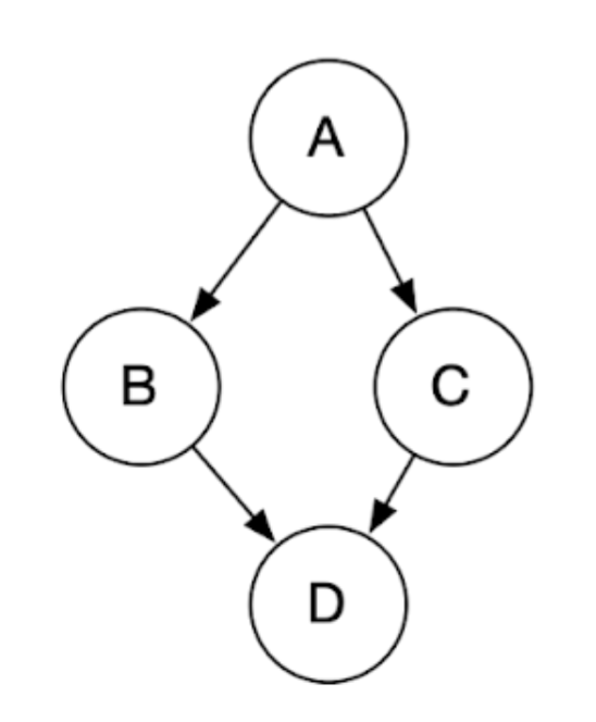 Enter a mathematical expression in the following format: P(A=0|C=0,D=1)P(B=0). Terms and conditioning may be in any order. - Consider another four-variable Bayes net: