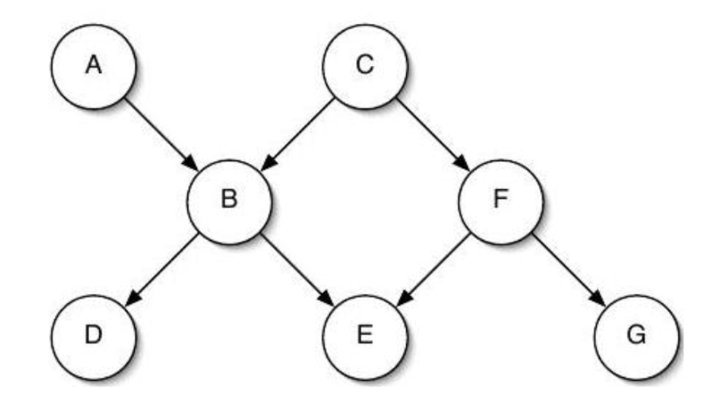 Enter the variables in the Markov Blanket of B as a comma separated list, e.g. 'B, D'.